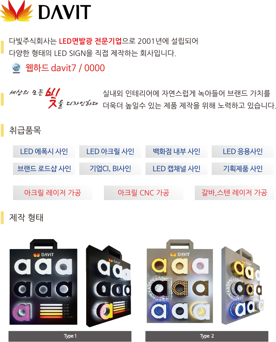 끊임없는 도전, 열정,남다른 기술 LED SIGN 전문업체 다빛(주)